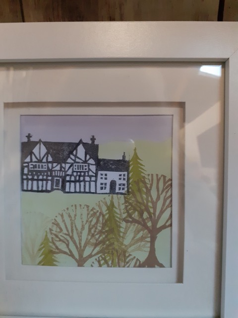 Since joining Reigate Art Studios this year she has been inspired by the local environment to create ink drop forest paintings as well as carved rubber prints of Tudor buildings.